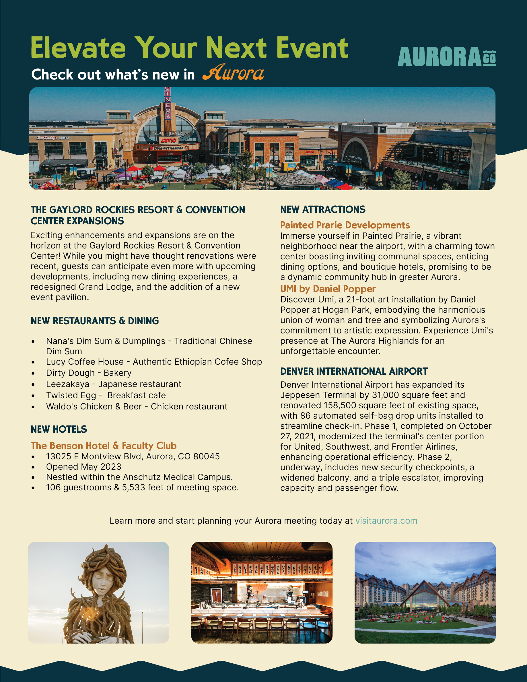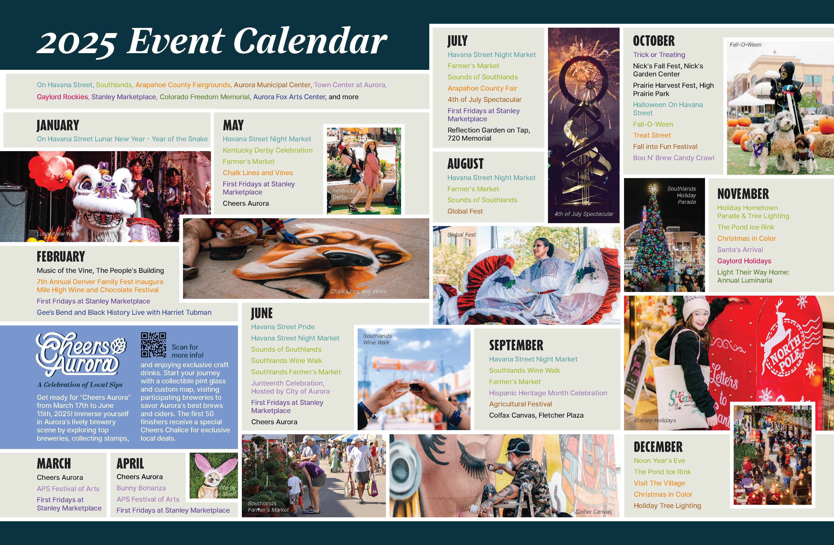 Visit Aurora is the official destination marketing organization for Aurora, Colorado, promoting the city’s diverse culture, attractions, and community. As a Graphic Designer, I’ve developed strong industry knowledge and design skills by collaborating with senior creatives and contributing to key projects: